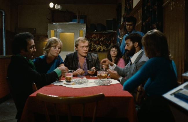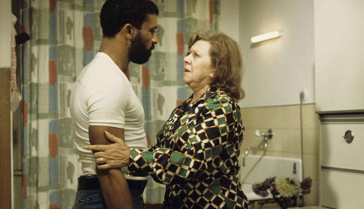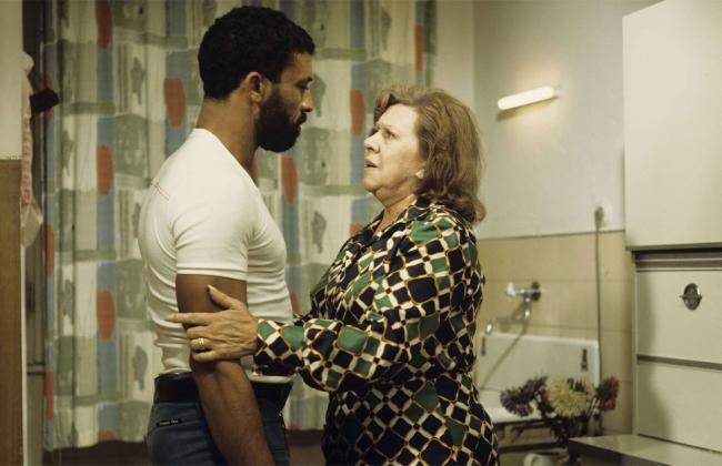 In the unlikely love between a washerwoman (Brigitte Mira) and a Moroccan guest worker (El Hedi ben Salem) twenty years her junior, muscular Ali and diminutive Emmi redefine each other. They wall off the hatred of neighbors, shopkeepers, and horrid children for a little bit of heaven, until they are unexpectedly defeated by a plate of couscous. This is Rainer Werner Fassbinder’s most beautiful homage to Douglas Sirk, his interpretation of All That Heaven Allows. Nowhere is his trademark framing—the indoor long shot—more aptly integrated, nowhere his jewel-box colors more brilliantly contrasted with the reality they adorn.