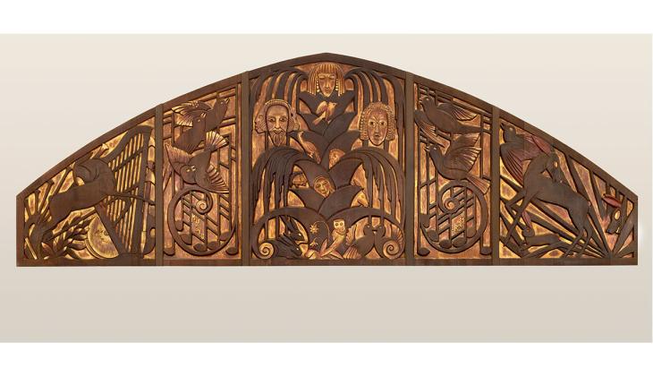 It is very unusual to see an actual piece of architecture displayed as an object in a museum gallery, but the twenty-foot-long carving Proscenium by Sargent Claude Johnson is just that. Originally made for an auditorium near the UC Berkeley campus, it features animals, birds, musical notes and instruments, and theatrical masks. In this workshop, explore ideas for architectural designs by making a blueprint plan on graph paper and then a three-dimensional model of your idea.