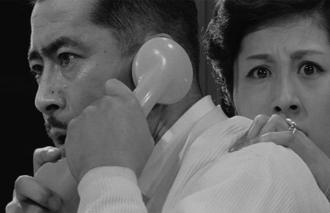 Akira Kurosawa’s adaptation of an American detective novel is both a superb, suspenseful thriller, and a Dostoyevskian metaphysical probe into the ambiguities of guilt and innocence. In one of his finest performances, Toshiro Mifune portrays a wealthy executive who must pay ransom for the release of his chauffeur’s son when the boy is mistaken for his son by a kidnapper. Kurosawa creates a constant, often ironic interplay between high and low, heaven and hell, presenting the case from the perspective of the wealthy man’s hilltop home, then from the kidnapper’s realm below, where the action descends for a manhunt that is a dazzling piece of filmmaking.