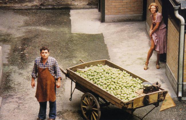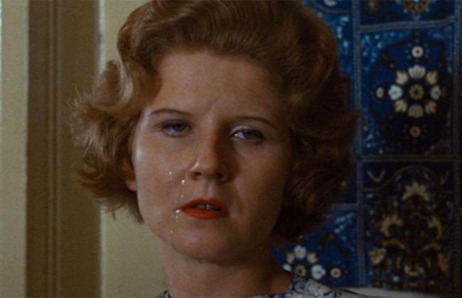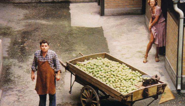 The Merchant of Four Seasons, set in Munich in the “prosperous fifties,” shows how that hollow phrase reflects failure back on itself for the average Hans, whose path in life might depend more upon the treacheries of family than the vagaries of the marketplace. This particular Hans (Hans Hirschmüller), a street vendor, is despised as he is dominated by his mother, then by his wife (Irm Hermann). Rainer Werner Fassbinder’s approach combines distance with grisly humor, a stark and startlingly elegant tableau saturated with color—Douglas Sirk’s reds and blues for the Sirk-inspired dreams of a ridiculous man.