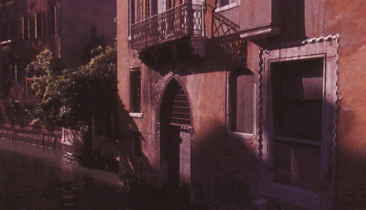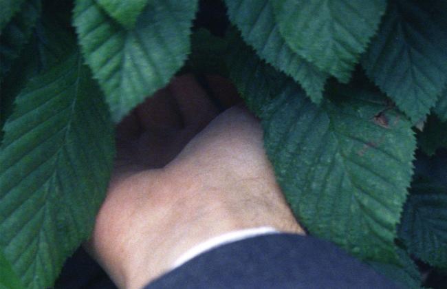 Work Done transports the viewer to a variety of times and places. Old-world customs are juxtaposed with contemporary urban scenes. Color filters heighten the contrast between the natural and man-made worlds. Ruskin foregrounds Robert Beavers’s love of literature, architecture, and landscape. (The filmmaker’s hand rests on a volume of John Ruskin’s The Stones of Venice, and much of the film is shot in the environs of Venice, London, and the Swiss Alps.) AMOR uses themes of cutting and sewing as metaphors. Cloth is cut and fabric is sewn, shrubs are trimmed and hedges form majestic garden archways, and a male figure claps his hands as if to signal a sync cue on which there is a visual cut. Central to this work are the complex emotions surrounding love, separation, and the metonymic twinning of objects, including that of edited image and sutured sound.